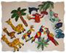 Для изготовления бегемотика кусок теста средних размеров тщательно раскатайте в руке и сформируйте (колбаску). Затем двумя пальцами немного защипните с одной стороны - делаем мордочку. Далее лепим 4 ножки, ушки, глаза. Все приклеиваем с помощью кисточки к туловищу-основанию. Ноги сверху мочим кисточкой, ставим на них нашего бегемота и оставляем сохнуть. Попугая сделать тоже не так сложно, как может показаться на первый взгляд. Изготовление так же начинаем с туловища. Шарик раскатываем и вытягиваем. Далее катаем шарик и делаем голову. Приклеиваем глаза и брови. Из маленького кусочка теста формируем клюв: сначала делаем верхнюю часть клювика, потом - нижнюю (немного меньше верхней - такой уж у попугая клюв), скрепляем их между собой кисточкой с водой и иголкой делаем ноздрю - маленькую дырочку в клювике. Далее приступаем к изготовлению хохолка: катаем 3-4 тоненькие колбаски, скрепляем их между собой и приклеиваем в голове попугая. Дело за малым: крыло, хвост, лапка. Для изготовления крыла лепим фигуру, делаем в ней 2 надреза и расщепляем. Хвост можно сделать из отдельных колбасок и склеить их между собой. И, наконец, лапку делаем, отдельно - пальцы и ветку, затем все детали склеиваем между собой при помощи воды. Осталось только собрать нашего попугая и дать ему высохнуть. Веселый дельфин делается так же просто и весело. Катаем шарик, формируем " колбаску". Теперь ее нужно согнуть дугой. Далее иголкой раздваиваем ее хвост, пальцами выравниваем. С другой стороны делаем носик. Плавник достаточно вытянуть из туловища. Вот наш дельфин и готов. Cамая любимая поделка моих детей - барашек. Вновь сначала катаем шар, делаем туловище - овал. Шерсть - либо сами катаем тоненькие колбаски, либо используем такой прием: берем обычную чеснокодавку и выдавливаем через нее тесто. Получаем неподражаемые кудряшки. Выдавливать лучше сразу на туловище, чтобы не повредить "шерсть". Далее делаем голову с глазами и дырочками-ноздрями, уши и четыре лапки. И собираем в таком порядке: голову - к туловищу, затем приклеиваем уши и лапы. Барашек готов. Обезьяну тоже сделать довольно легко. Опять начинаем изготовление с шара. Катаем его до тех пор, пока он не станет абсолютно гладким. Затем делаем из него овал. Далее сдавливаем наш овал пальцами, получаем "туловище с головой", причем из цельного куска теста. Катаем два маленьких шарика- глазика, делаем большой рот, большие же круглые уши, все крепим к нашей обезьяне. Длинные руки (вспомните, обезьянки очень любят лазить по лианам), ноги (совсем не большие), иголочкой обозначаем пальцы. Колбаска - длинный-длинный хвост. В руку нашей обезьяне можно "дать" лиану, а можно банан (колбаску с одной стороны сужаем, приклеиваем кожуру (последний на рисунке). Осталось собрать всю нашу обезьяну: руги, ноги и хвост приклеить, в руку дать банан. На этом можно было бы закончить изготовление поделок, но ведь нам нужно повесить их на елку! Для того, чтобы это осуществить, достаточно взять небольшой кусок проволоки и, согнув в виде петли, осторожно вставить проволоку в "сырые" изделия. А теперь их можно просушить в духовке, чтобы раскрасить, покрыть лаком и поскорее украсить нашу елку. Ведь Новый Год уже совсем-совсем близко!