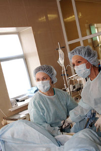 Следует отметить, что в зависимости от размеров и типа локализации опухоли могут появляться вторичные осложнения. Так, при нахождении миомы в области перешейка либо шейки матки может наблюдаться частое или затрудненное мочеиспускание, неполное опорожнение мочевого пузыря, цистит. При такой локализации опухоли может быть затруднено кровоснабжение органов малого таза, появляется венозный застой, тромбоз вен малого таза и ног. При локализации миомы позади шейки матки, она может оказывать давление на прямую кишку, что в конечном итоге может привести к хроническому колиту, геморрою, частым позывам к опорожнению кишечника либо вызывает ощущение неполной дефекации. При расположении опухоли по боковой поверхности матки может наблюдаться сдавление мочеточников, при котором происходит нарушение оттока мочи, зачастую присоединяется хронический пиелонефрит. При нарушении питания миомы и некрозе узла либо при перекруте ножки появляются признаки так называемого острого живота, который сопутствуется резкими болями, повышением температуры тела, тошнотой, рвотой, раздражением брюшины. В таком случае следует исключить перекрут ножки опухоли или кисты яичника, острый аппендицит, острое воспаление придатков, внематочную беременность. В аналогичных случаях показано хирургическое лечение. Крайне редким осложнением, которое появляется после физической нагрузки, во время беременности или без явных причин является разрыв одного из сосудов миоматозного узла. Такое осложнение также сопровождается приступом резких болей и симптомами внутреннего кровотечения. Выделяют несколько причин возникновения продолжительных и интенсивных менстраульных и маточных кровотечений при миоме: 1. Увеличение размеров матки и площади эндометрия. 2. Снижение перистальтики матки в результате деформации ее миомой. 3. Часто сопутствующая миоме гиперплазия эндометрия. 4. Большое количества венозных сплетений при миоме. 5. Изменение сосудистой сети матки. Одно из тяжелых клинических течений приобретают миоматозные узлы, которые локализуются под слизистой оболочкой матки, внедряясь в ее полость. Такие узлы располагаются или на широком основании, или на тонкой ножке, которая постепенно удлиняется до тех пор, пока миоматозный узел не достигает шейки матки. Узлам с подслизистым расположением присущи периодически появляющиеся схваткообразные боли внизу живота, маточные кровотечения. Из влагалища появляются жидкие кровянистые выделения с неприятным запахом.