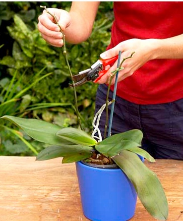 Вынимаем орхидею из горшка Для того, чтобы осторожно извлечь растение, не повредив его корни, следует размять горшок со всех сторон и слегка ударить по его дну. Если корни сильно приросли к стенкам, аккуратно и осторожно проведите по краю горшка, легко отделяя, таким образом, земляной ком от стенки. Если это не получается, старый горшок нужно аккуратно разрезать, не повредив при этом инструментом корни растения. Удаление старого субстрата Удалять старый субстрат необходимо осторожно и аккуратно. Решительно расправьте плотный ком корней и пальцами очистите их от остатков грунта. Переплетенные корни хорошо также промыть под душем тепловатой водой. Очистка корней Освободив корни от старого субстрата, острыми ножницами (которые предварительно желательно продезинфицировать спиртом) отрежьте все отмершие корневые части. В этом случае корни будут полые, сухие или подгнившие и мягкие. Если на очищенных корнях Вы обнаружите вредителей, поставьте свою орхидею в ведро с водой. Как правило, они быстро погибают. Для того, чтобы защитить места срезов от высыхания, гниения или инфицирования бактериями и вирусами продезинфицируйте их порошком древесного угля. Подготовка нового горшка Пока экзотическая красавица нежится в ведре с водой, подготовьте для нее новый горшок, который должен быть обязательно прозрачным и иметь отверстия для хорошей вентиляции и отвода воды. Сначала наполните емкость на 1/4 свежим субстратом для орхидей или же дренажным материалом. Это могут быть и пенополистирольные шарики, и галька, и керамзит. Дренажный слой предотвращает повреждение корней влагой, а также отводит лишнюю воду. Посадка орхидеи в новую емкость В подготовленный горшок осторожно помещаем орхидею, стараясь не поломать ее просушенные корни. Оставшееся пространство равномерно заполняем субстратом. Чтобы грунт уплотнился, рекомендуется постучать по стенкам горшка. Не запихивайте насильно в горшок длинные корни, пусть некоторые из них останутся на поверхности. Они могут свисать с краев горшка, помогая растению поглощать влагу из воздуха. Заполнение свободного пространства Свободное пространство между корнями заполняется с помощью деревянной палочки, например, бамбуковой, слегка прижимая субстрат, но, не уплотняя его излишне. И здесь нужно быть очень внимательным, чтобы не повредить растение. После пересадки полейте орхидею не раньше, чем через 5 дней, чтобы вместе с водой на свежие раны не попали возбудители болезней. При этом каждый день опрыскивайте листья. Не спешите также и с внесением удобрений. Начинайте подкармливать орхидею через 3-4 недели. Закрепление побегов Длинные цветоносы орхидеи, изгибающиеся под тяжестью цветков во время цветения, подпирают бамбуковой палочкой, которую ставят как можно ближе к цветоносу. Цветонос прикрепляют к палочке специальным зажимом для орхидей или же при помощи обычных заколок для волос. Палочка-опора должна быть изготовлена из натурального материала. Металлические опоры, покрытые лаком, со временем приводятся в негодность и покрываются ржавчиной. Правильный уход за орхидеями В чем же заключается правильный уход за орхидеями? После цветения цветонос подрезают острыми и чистыми ножницами. Отцветший цветонос фаленопсиса, к примеру, не обрезают, а укорачивают на расстоянии около 2 см над верхней спящ