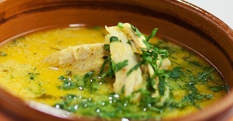 Куриное мясо промыть, нарезать и отварить до готовности. Бульон солим по вкусу и добавляем лавровый лист. Репчатый лук чистим, мелко нарезаем и слегка обжариваем в растительном или топленом масле. Яйца взбиваем в миске венчиком и добавляем лимонный сок. Муку слегка обжариваем на сухой сковороде, следим, чтобы она не поменяла цвет. Из кастрюли с куриным бульоном берем половник бульона, вливаем его в обжаренную муку и хорошо перемешиваем, чтобы не было комочков. Свареную курицу достаем, остужаем, отделяем мясо от костей и нарезаем небольшими кусочками. Петрушку и кинзу промыть, оборвать листики, мелко нарубить и добавить в бульон (можно нарезать прямо со стеблями). Затем муку с бульоном и обжаренный лук добавляем в кастрюлю с куриным бульоном и варим около 5-10 минут. Вливаем в суп взбитые с лимонным соком яйца тонкой струйкой при постоянном размешивании, добавляем по необходимости соль и молотый перец. Даем супу закипеть и снимаем с огня. Наливаем в тарелки суп, сверху выкладываем немного куриного мяса и подаем к столу. Приятного аппетита!