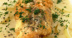 Рыбный шницель филе рыбы-капитана - 500 г яйцо - 2 шт. молоко - 2 ст. ложки мука пшеничная - 2 ст. ложки молотые сухари - 1/2 стакана тертый сыр - 2 ст. ложки растительное масло, соль |