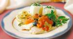 Серебряная кефаль по-португальски филе кефали - по 200 г на человека томаты без семечек - 300 г лук репчатый, нарезанной кружками - 3/4 луковицы масло сливочное - 100 г белое вино - 0,75 л соль по вкусу |