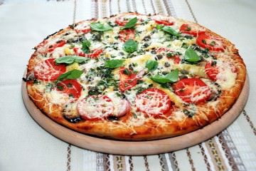 Затем берем тесто и раскатываем его на фольге смазанной оливковым маслом и отправляем его также на гриль минутки на три. Готовую основу для пиццы снимаем с гриля, переворачиваем, выкладываем начинку, нарезанный базилик и куски сыра моцарелла. Снова отправляем нашу пиццу на гриль уже минут на десять. Пицца овощная на гриле готова!