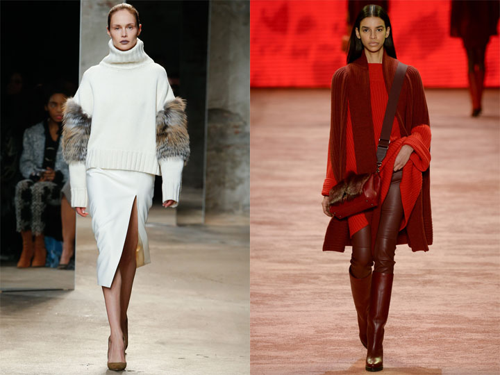 Какие модные свитера сезона осень-зима 2016-2017 годов будут в тренде? Модные тенденции свитеров Вязаные и трикотажные изделия были очень модными лет двадцать назад. Затем они перестали быть актуальными, и вот сегодня свитера вновь находятся на пике популярности. По крайней мере, модные показы сезона осень-зима 2016-2017 годов убедили нас в этом. Именитые дизайнеры призывают современных модниц носить стильные и теплые вещи, выполненные в молодежном стиле с легким налетом романтики и очаровательного винтажа. Главная тенденция модных свитеров – объем, стиль оверсайз как нельзя лучше справляется с этой задачей. Огромные вязаные свитера смотрятся так, будто сняты с чужого плеча, особенно это заметно, если их сочетают с узкими джинсами скинни. Модны платья-свитера из гладкой однотонной или пестрой шерсти. Носят подобные вещи с широкими поясами, плотными черными колготами или лосинами и элегантными ботильонами. Тренды сезона – деревенская вязка, плетения, крупные косы, выступающие шишечки, грубый материал, неокрашенная верблюжья шерсть, драпировка, асимметрия, неровные края, многослойность. Изделия свободного кроя из грубоватой фактуры, крупной вязки производят двоякое впечатление. С одной стороны, имеет место быть эффект нарочитой неопрятности, но с другой – смотрятся они потрясающе стильно. Белые брюки или юбка, элегантная обувь восстановят гармонию в образе, добавят ему шика и женственности. ЦВЕТОВАЯ ГАММА, ПРИНТЫ, ДЕКОР Этой осенью дизайнеры предлагают носить вещи насыщенных цветов, смелее добавлять в образ яркие акценты.